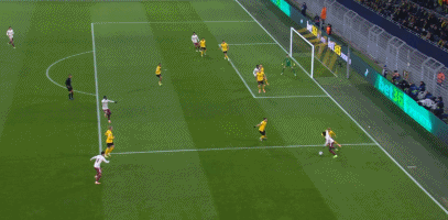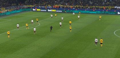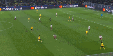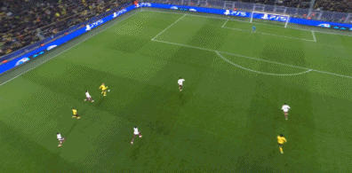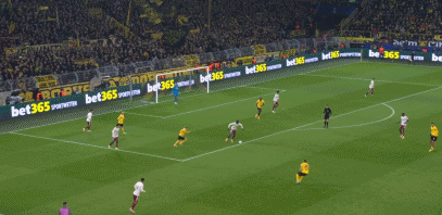 第45+1分钟,安塞尔米诺乱战助攻,吉拉西头球破门,多特1-0!
